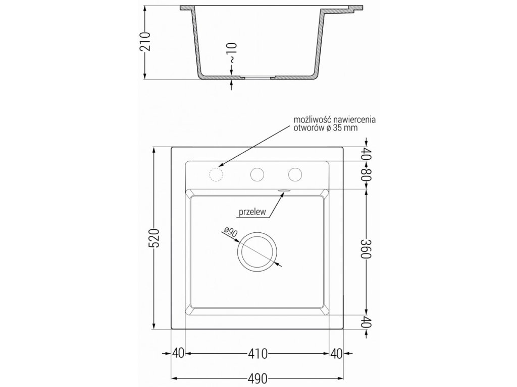 Průměr odtoku: ø90 mm