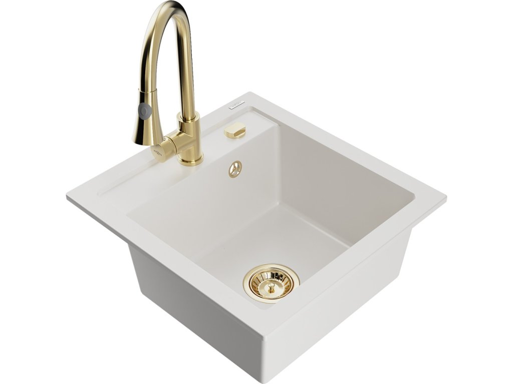 MEXEN/S - Vito granitový dřez 1-miska včetně baterie Elia, bílá 6503-20-670101-50