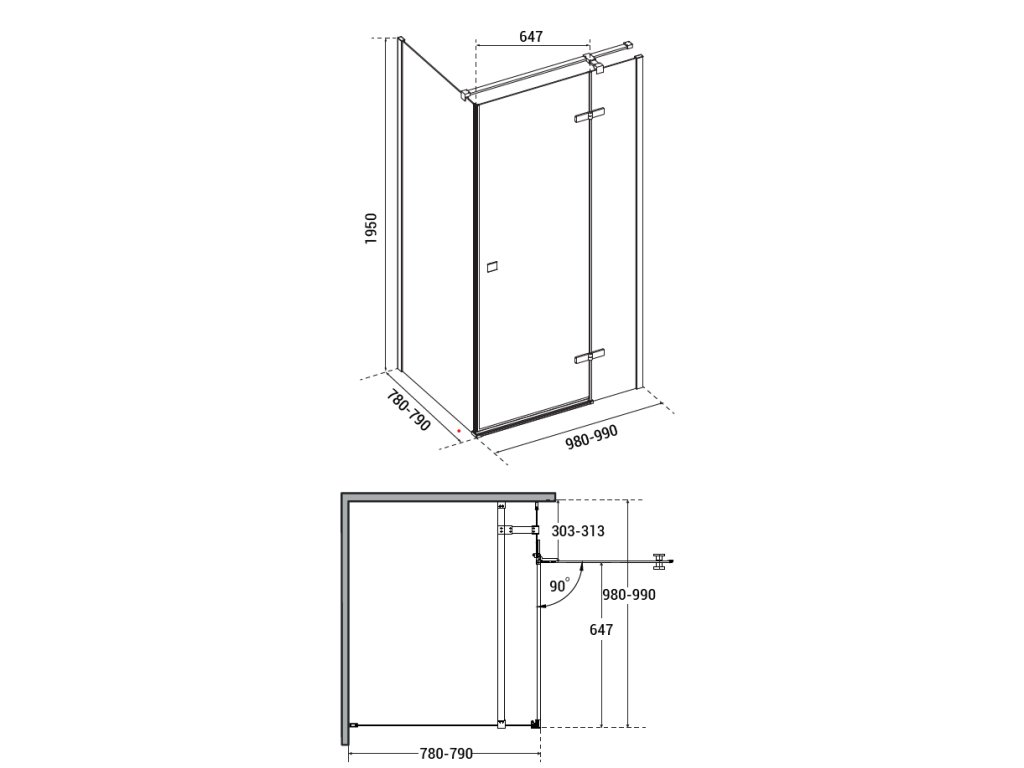 - 100 × 90 × 195 cm (montážní rozměr 98 - 99 × 88 - 89 cm)