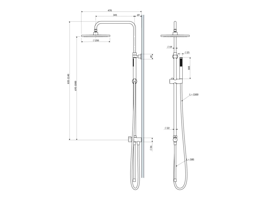 OMNIRES - MICRO přisazený sprchový sloup, lesklý chrom SYSMICROLCR