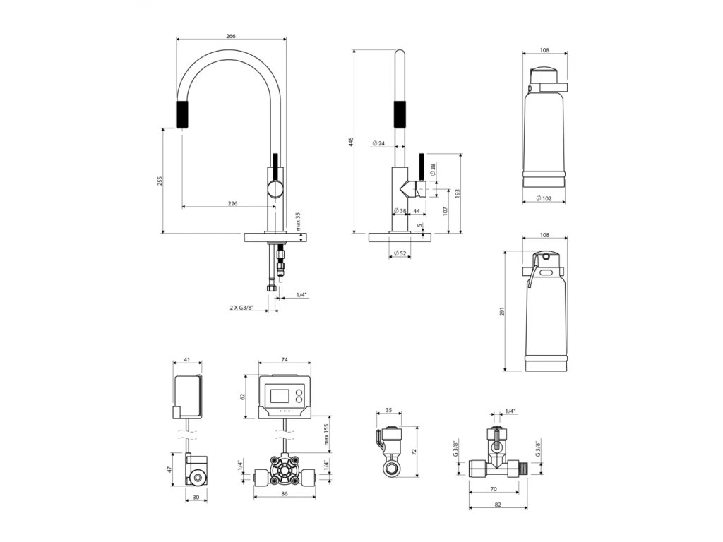 Baterie je k dispozici v setu se systémem vodní filtrace Dafi, který se skládá z filtrační patrony a průtokoměru. Technologie aktivního uhlí a pryskyřice použitá ve filtru umožňuje snížit obsah chlóru a těžkých kovů a také snížit úroveň tvrdosti vody. Výměna filtru je extrémně jednoduchá a měřič o její nutnosti informuje na základě skutečného průtoku vyčištěné vody. Prvky filtračního systému se snadno instalují do jakékoli standardní dřezové skříňky.