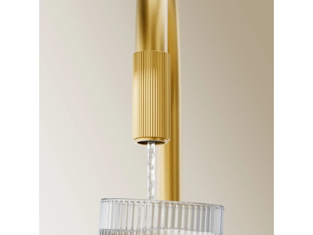 Kuchyňská baterie OMNIRES SWITCH kombinuje minimalistický design založený na vyvážených proporcích s praktickou funkčností, poskytuje běžnou a filtrovanou vodu. Výrazné, precizně žebrované detaily umožňují intuitivní použití tím, že označují dva nezávislé body otevření vody: běžnou vodu a filtrovanou vodu na konci výtoku - stačí otočit kroužkem umístěným na něm a naplnit sklenici rychlým proudem pitné vody s nejvyšší chutí.