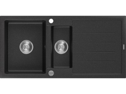 MEXEN - Andres granitový dřez s malým odkapávačem 1000 x 500 mm,černý/stříbrný metalik 6515101510-73