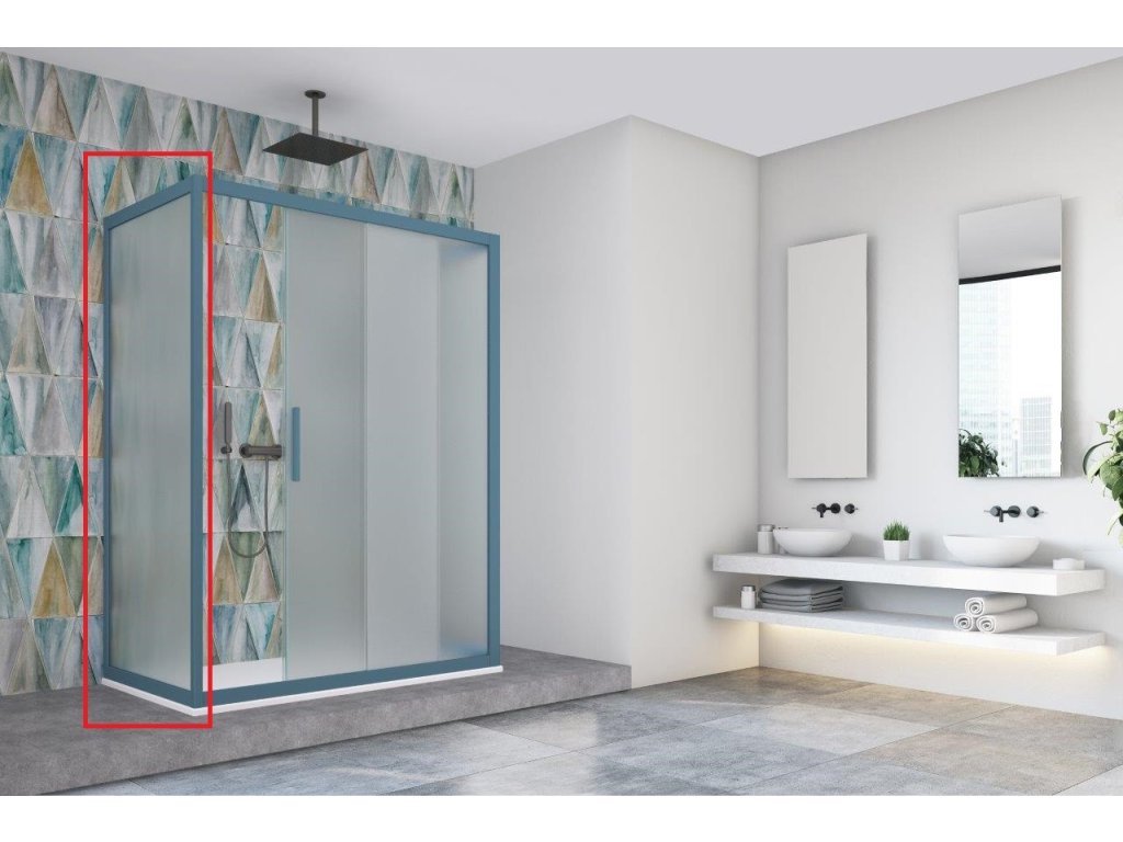 Samostatná pevná stěna BE.COLORS F1, společnosti HOPA. Není určena jako samostatně stojící zástěna, slouží ke kombinaci se sprchovými dveřmi série BE.COLORS. Kombinací stěny a sprchových dveří vytvoříte sprchový kout.