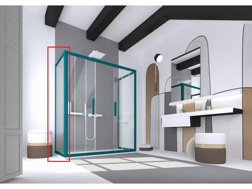 Samostatná pevná stěna BE.COLORS F1, společnosti HOPA. Není určena jako samostatně stojící zástěna, slouží ke kombinaci se sprchovými dveřmi série BE.COLORS. Kombinací stěny a sprchových dveří vytvoříte sprchový kout.