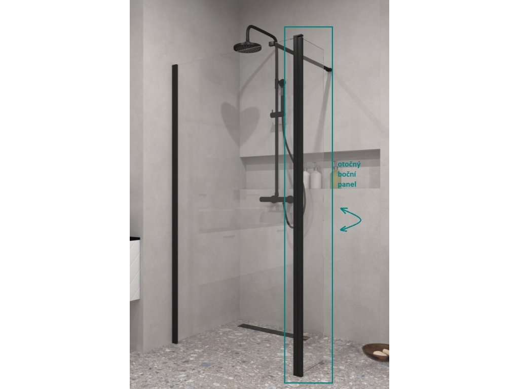 Při montáži Walk-in ECO-N BLACK včetně tohoto bočního otočného panelu ECO-N BLACK je instalace možná pouze přímo na podlahu, nelze nainstalovat na vaničku z důvodu většího montážního rozměru.