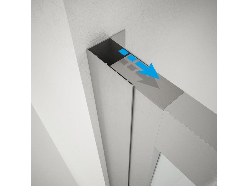Sprchový kout, tvořený z pevné stěny oxi.SLIDE F1S a sprchových dveří je možné instalovat na sprchové vaničky nebo velmi elegantní přímo na podlahu. Při montáži přímo na podlahu jsou velmi efektivním řešením pro odvod vody podlahové odtokové žlaby.