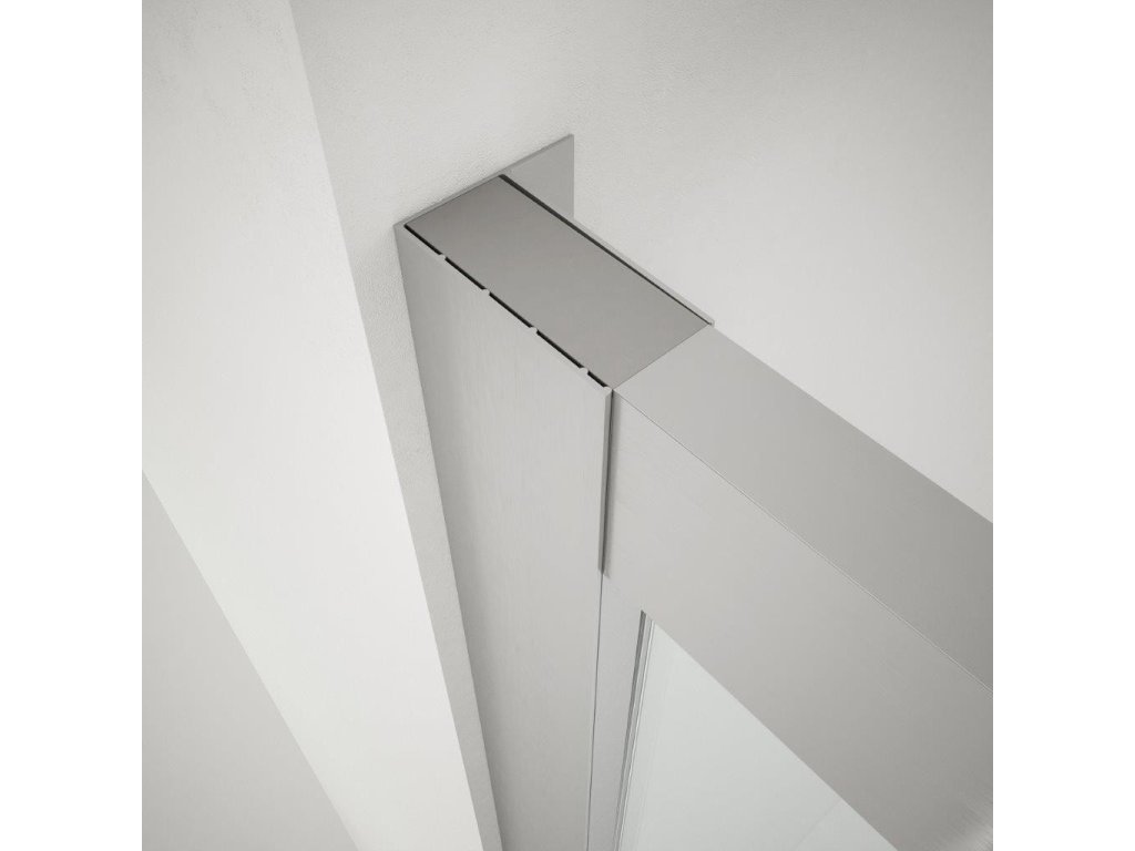 Sprchový kout, tvořený z pevné stěny oxi.SLIDE F1S a sprchových dveří je možné instalovat na sprchové vaničky nebo velmi elegantní přímo na podlahu. Při montáži přímo na podlahu jsou velmi efektivním řešením pro odvod vody podlahové odtokové žlaby.