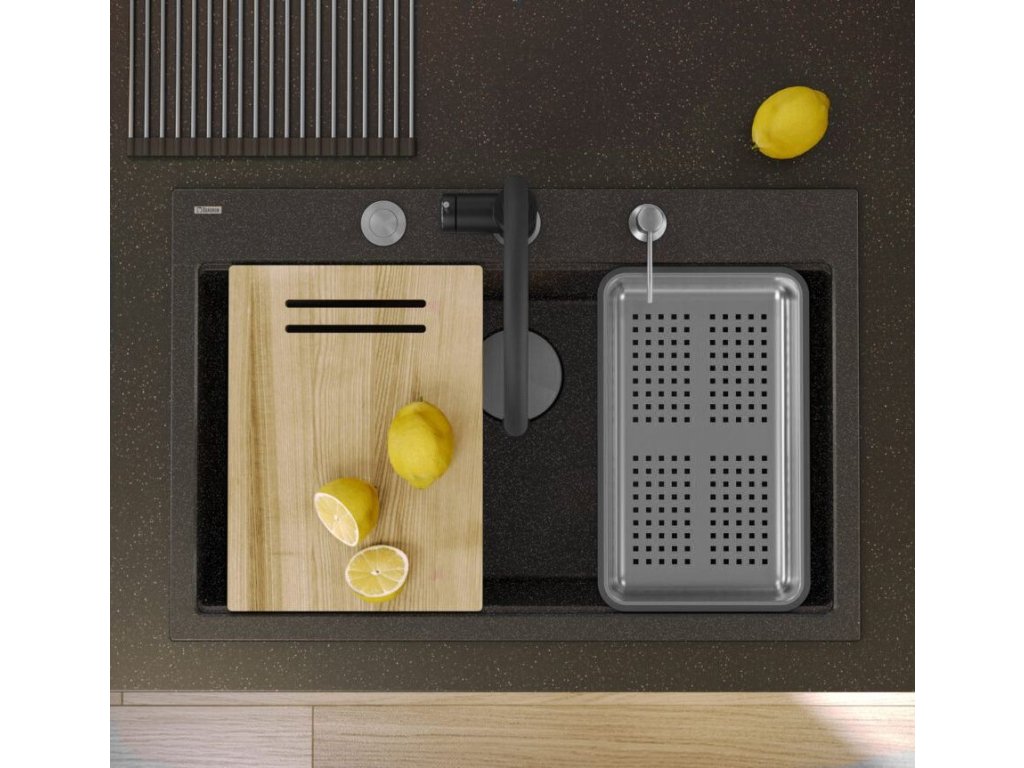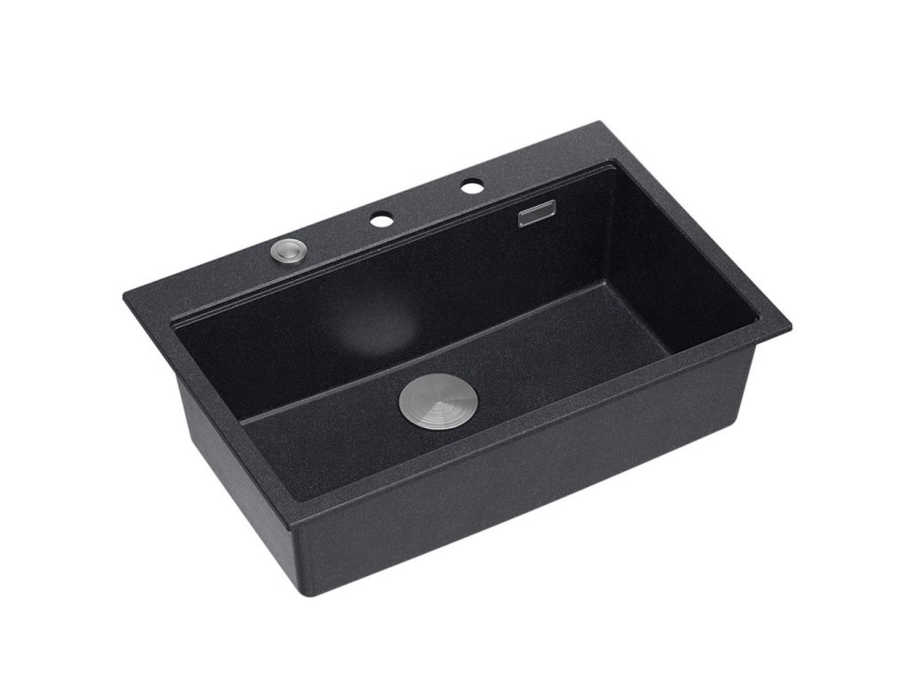 Granitový vestavný dřez s odkapem 77x44 cm v černé barvě kombinuje moderní design a vysokou odolnost. Vyroben z kvalitního granitového kompozitu, který odolává poškrábání,...