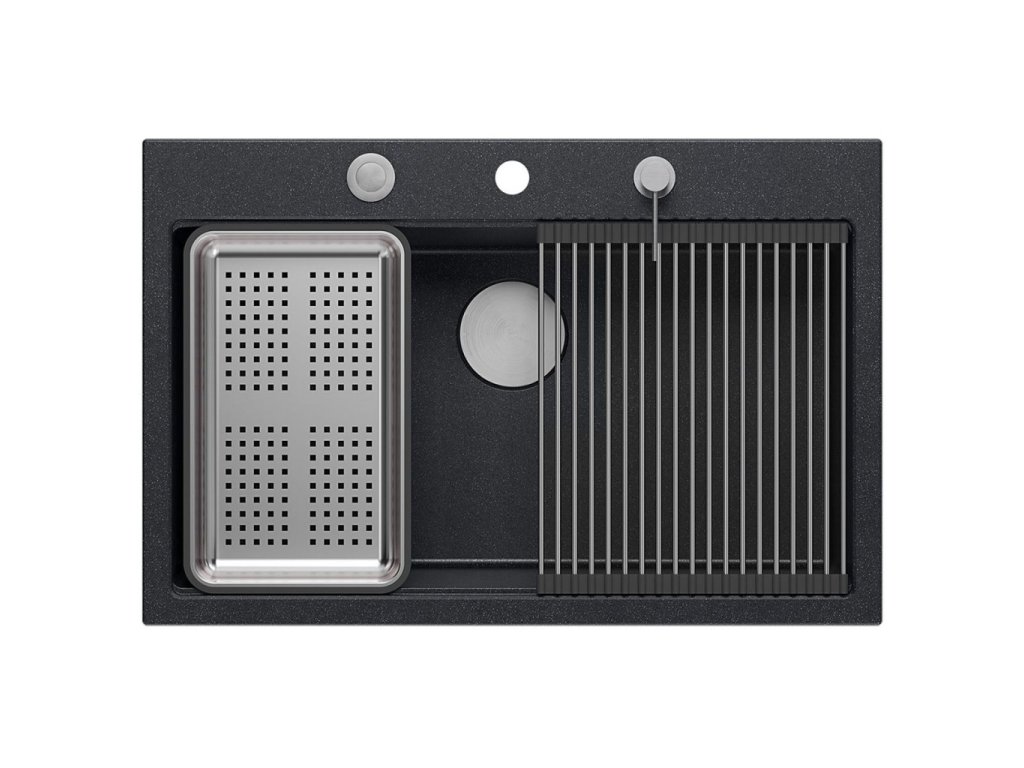 Zlewozmywak Marc 110 Workstation swoim minimalistycznym, nowoczesnym wyglądem sprawia, że wpasuje się w aranżację każdej kuchni. Głęboka i pojemna komora zapewnia duży komfort użytkowania. Zastosowany materiał, charakteryzują się wyjątkową wytrzymałością oraz odpornością na zróżnicowane temperatury i charakter wykonywanych w ich obrębie prac. Bardzo gładka powierzchnia sprzyja utrzymaniu czystości. Zlewozmywak przystosowany jest do montażu wpuszczanego. W komplecie ze zlewem jest dostępny szereg akcesoriów kuchennych – dozownik płynu, bambusowa deska do krojenia, ociekacz oraz zwijana Qmata stalowo silikonowa (nie jest dołączona do zestawu w wariantach złotym i miedzianym) , która może również służyć do odkładania mokrych produktów spożywczych lub naczyń, ale także sprawdzi się jako podstawka pod gorący garnek. Zastosowanie tych elementów, powiększa powierzchnię roboczą w kuchni i pozwala z powodzeniem wykorzystać komorę jako dodatkowe miejsce robocze, do krojenia, czy suszenia. (NO-AUTOTRANSLATE)Doplňkové parametry