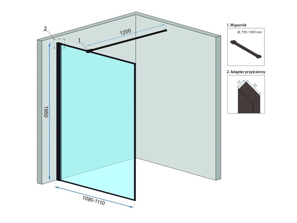 Černé profily v kombinaci s průhledným sklem nejsou ničím jiným než dokonalým vyvážením designu celého produktu. Černé linie probíhající podél zdi, vytvářející vyvážený vzor, jsou další hodnotou, která potěší oko i těch nejsofistikovanějších chutí. Nastavitelné hliníkové rameno doplňuje celou kompozici svým minimalismem.