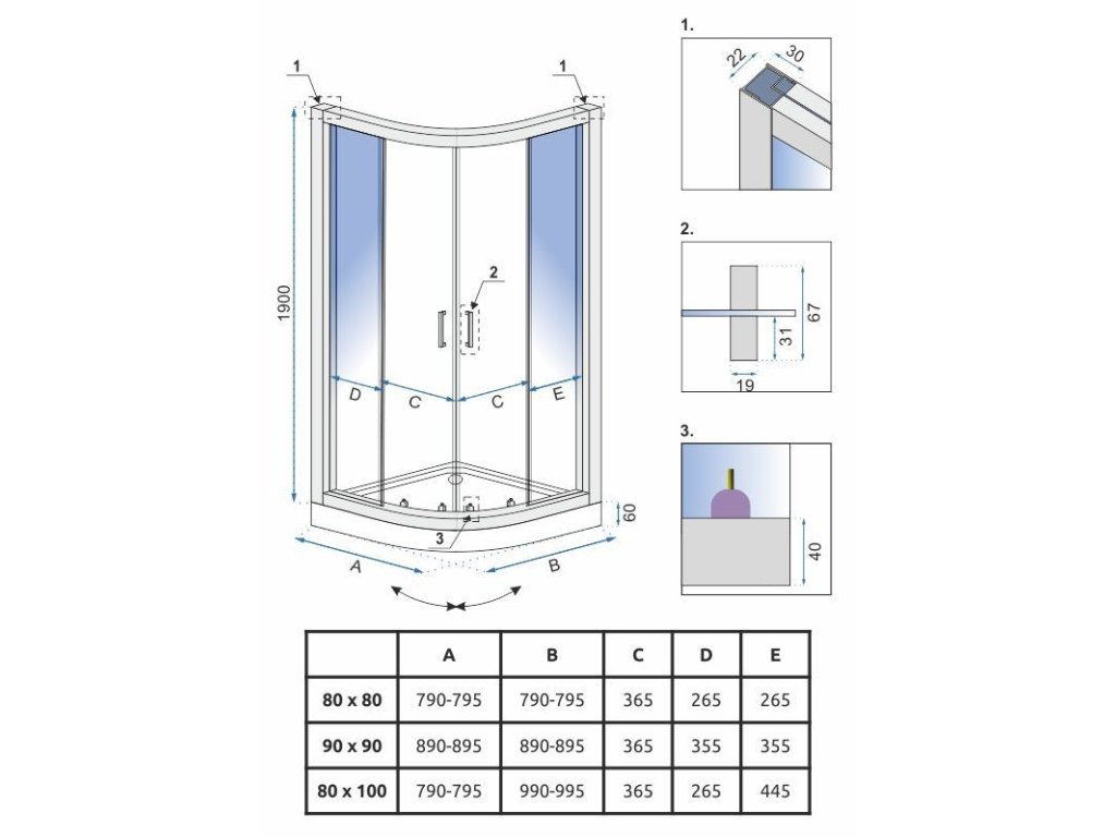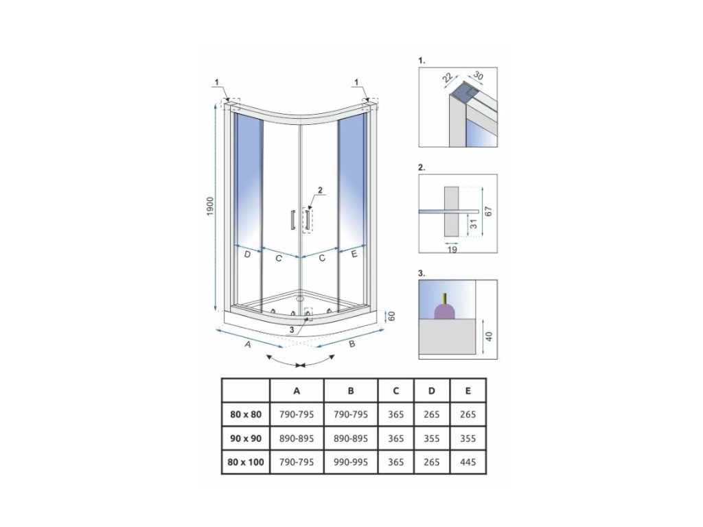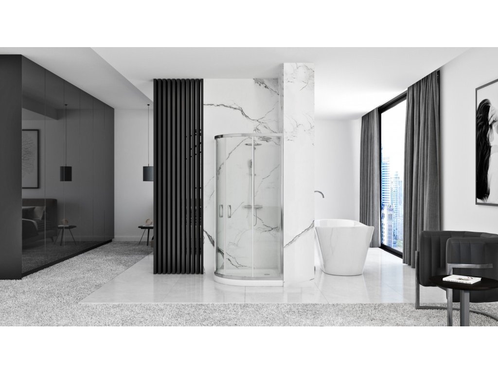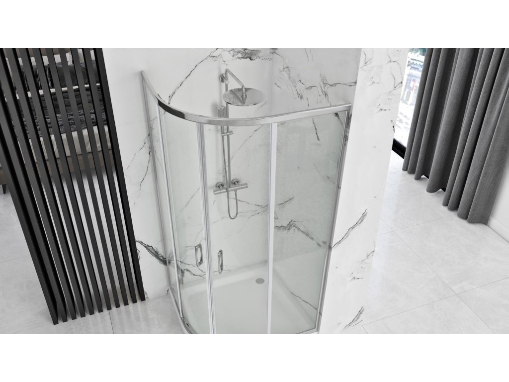 Čtvrtkruhový rohový sprchový kout LOOK od výrobce REA o výšce 190 cm s posuvnými dveřmi.