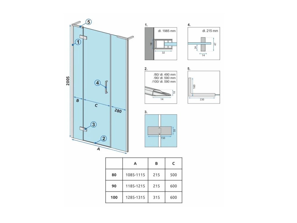 Poznámka: možnost prodloužení s rozšiřovacím sklem REA-K6610 a v případě montáže do niky je zapotřebí použít magnetický profil REA-K7771.