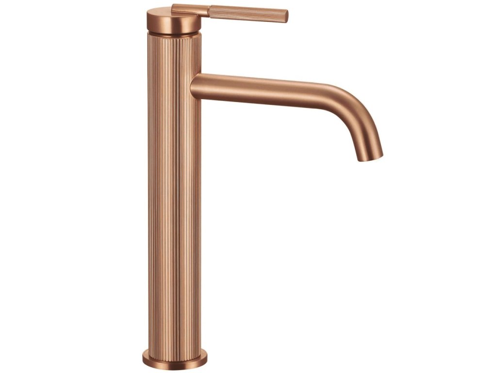 Umyvadlová baterie Argon je výjimečný model vytvořený pro moderní koupelny, kde záleží nejen na funkčnosti, ale i na designu. Štíhlá vysoká forma a charakteristické rýhované provedení korpusu dělají z baterie elegantní akcent u umyvadla. Konstrukce je určena pro montáž k umyvadlům na desku, což zajišťuje soudržný a estetický výsledek. Model je vyroben z pevné mosazi a opatřen inovativní vrstvou Pvd (Physical Vapour Deposition), která poskytuje mnohonásobně vyšší odolnost proti opotřebení a poškrábání než tradiční způsoby povrchové úpravy. Povrch v barvě kartáčované mědi působí velmi elegantně a snadno se čistí. Minimalistická páka a precizně tvarovaný výtok zaručují pohodlí při každodenním používání; celek se skvěle kombinuje s keramickými či skleněnými umyvadly. Argon je ideální volbou pro loftové, glamour i moderní aranžmá.Doplňkové parametry