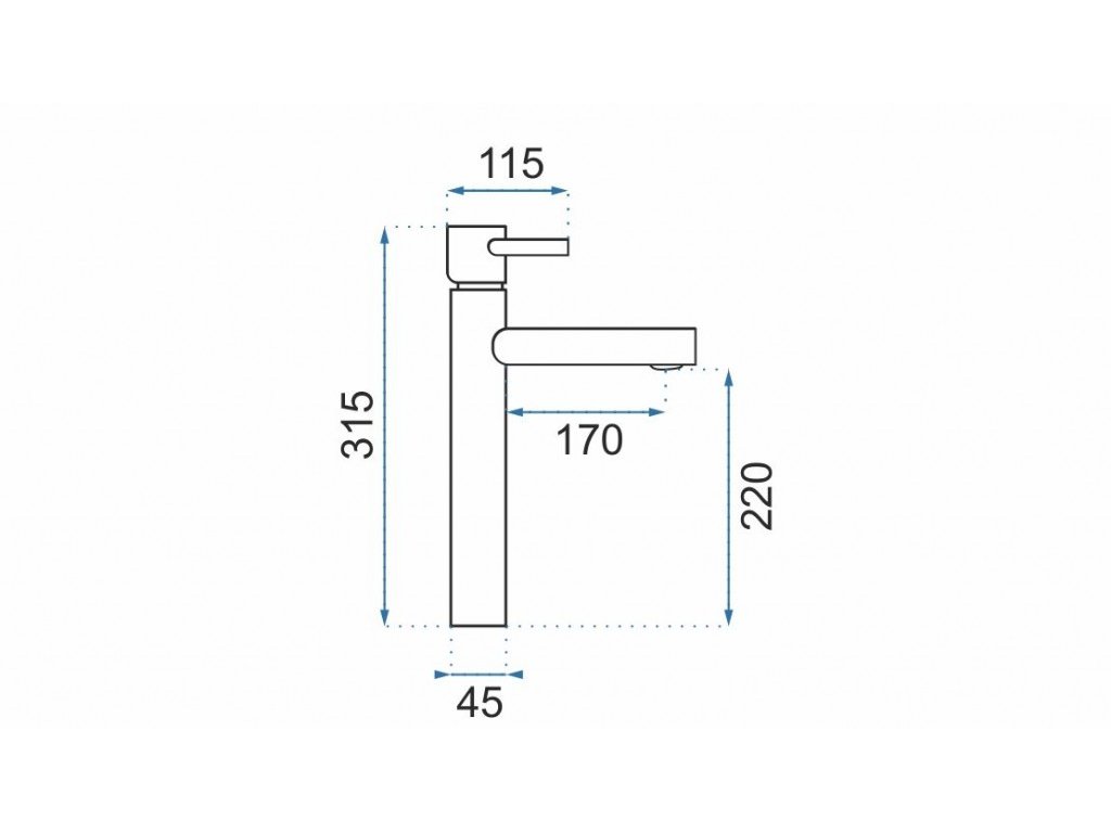 Rozměry umyvadlové baterie Tess- Celková výška: 31,5 cm