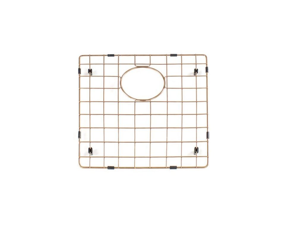 Mřížka do dřezu Reginox Miami 50x40 Copper (R30677). Mřížka chrání dřez před opotřebením. Při používání dřezu není potřeba mřížku odstraňovat, voda krásně odtéká do odpadu. Gumové nožičky a vnější ohraničení mřížky zajišťuje pevné uchycení na dně dřezu a dřez chrání.
