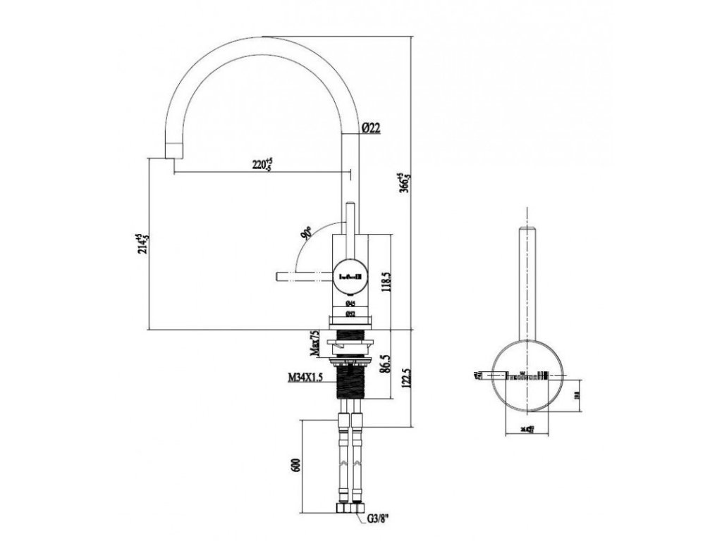 Vanička dřezu Miami 500 je dostatečně hluboká (20 cm) pro pohodlné mytí i objemného nádobí, jako jsou hrnce a pečící plechy.