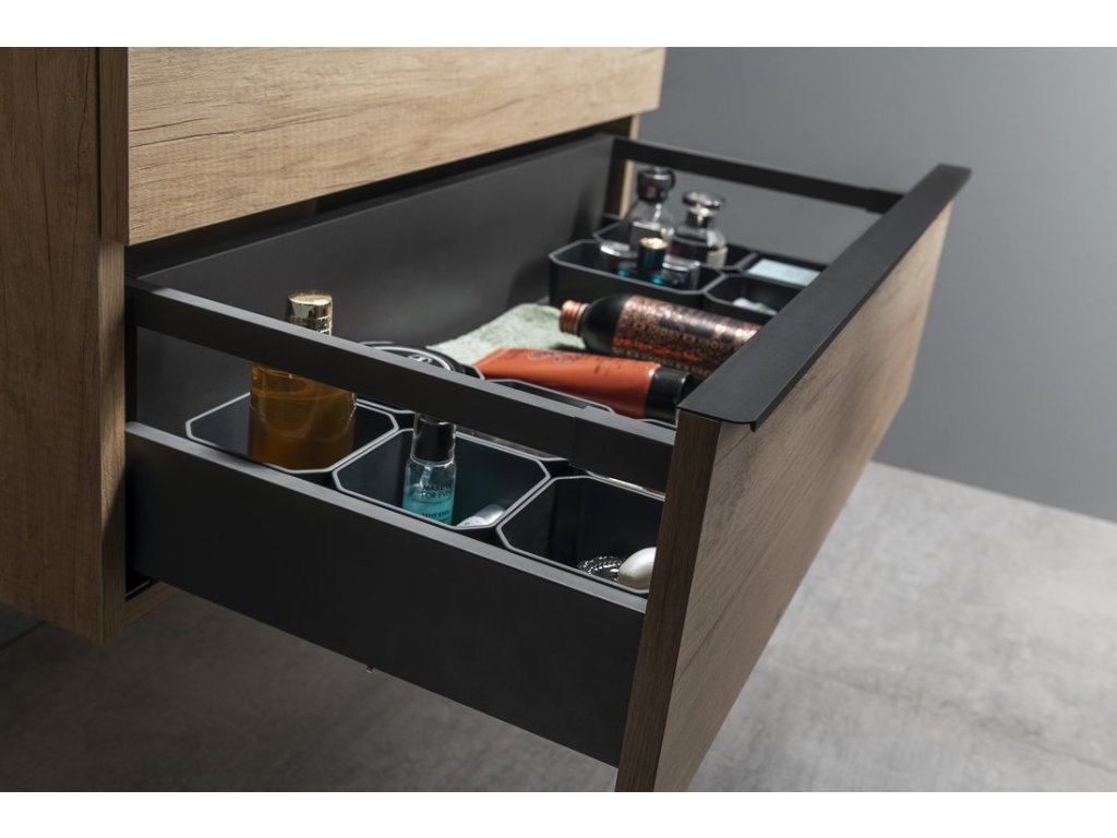 Nábytek je vybaven pojezdy zásuvek s pomalým dojezdem a systémem automatického dovření zásuvek. Již žádné hlučné dovírání.