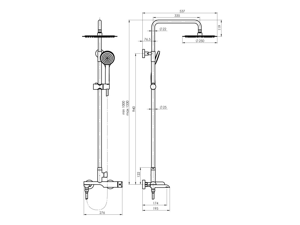- Regulovatelná výška hlavové sprchy 881 - 1211 mm