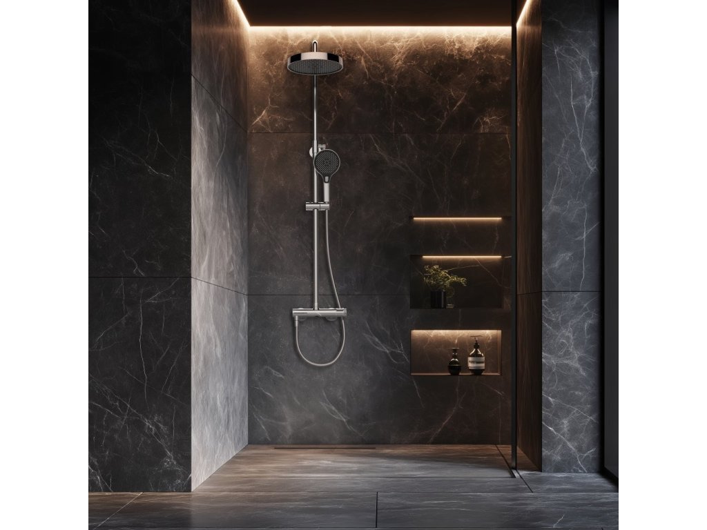 Sprchový termostatický nástěnný set COSY-10 + SLOUP RAINFALL, chrom + slevový kód