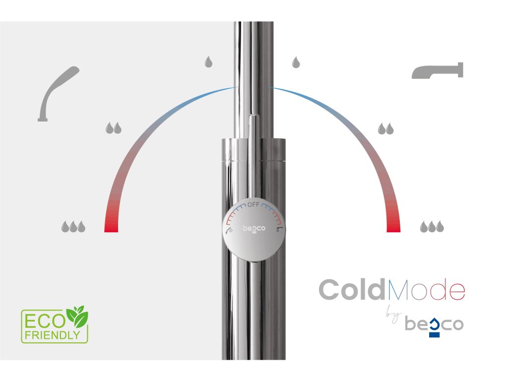 - Nová generace ovládání ColdMode – šetří vodu a energii. Standardní poloha rukojeti aktivuje pouze studenou vodu.
