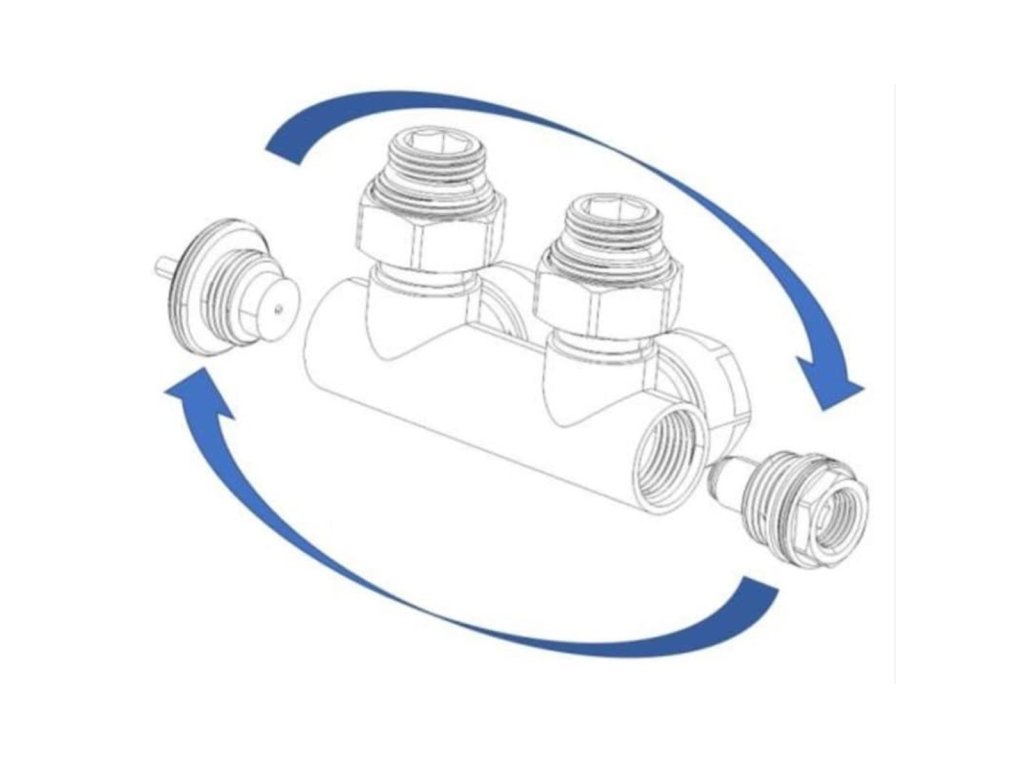Ventil je určen pro připojení radiátorů na rozvody TUV s vývodem ze zdi. Nelze kombinovat s elektrickou topnou tyčí.