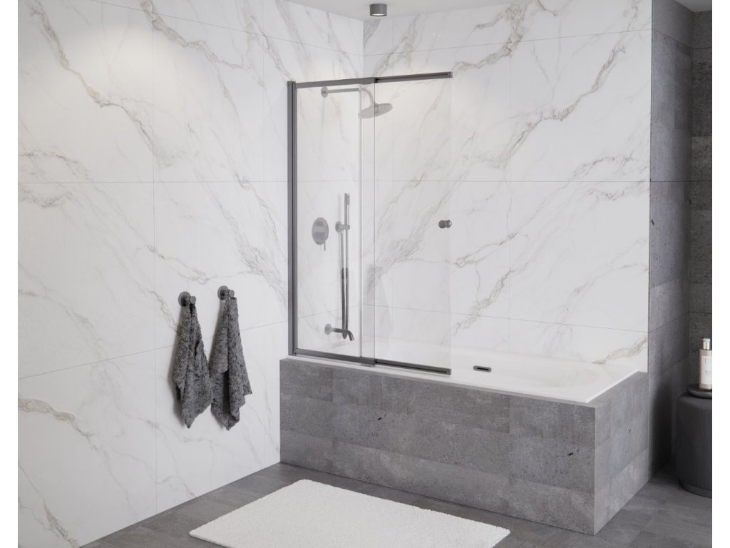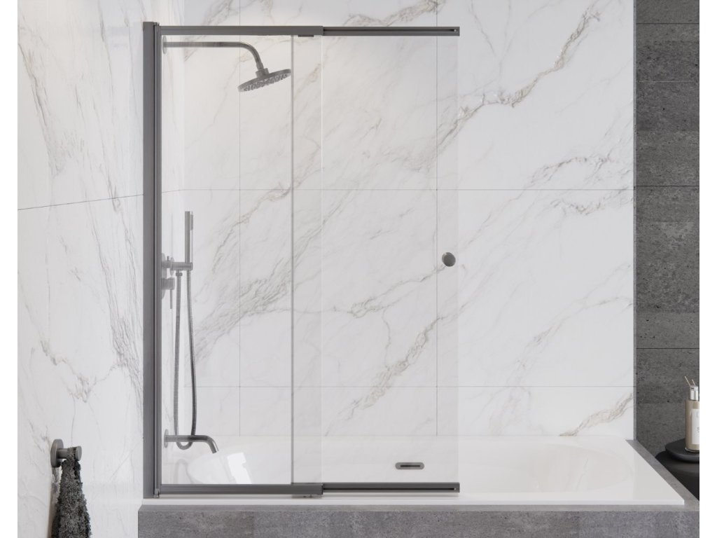 Vanová zástěna EASY SLIDE GRAFIT, 100, Univerzální Levé / Pravé, Čiré bezpečnostní sklo - 4 mm, Grafit