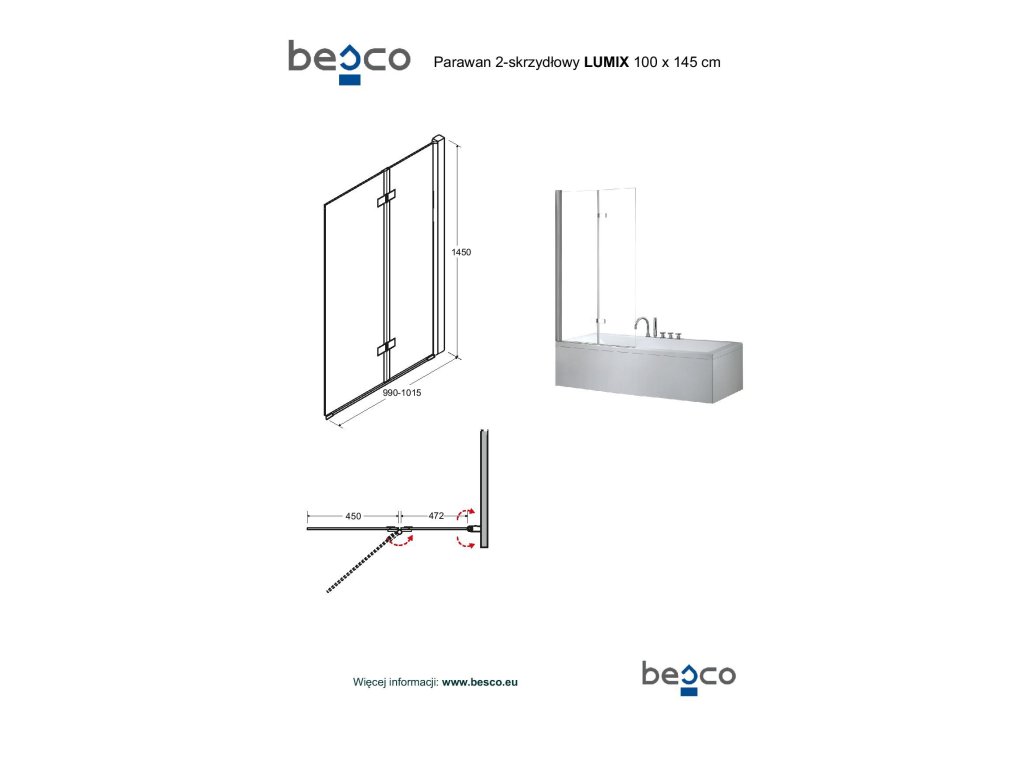 - Rozměry: 100 × 145 cm, montážní rozměr 99 - 101,5 cm