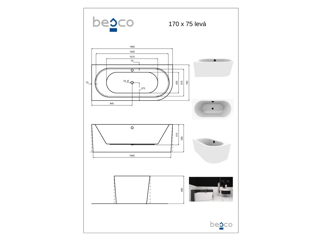 Vana je určena k montáží k průběžné stěně delší stranou.