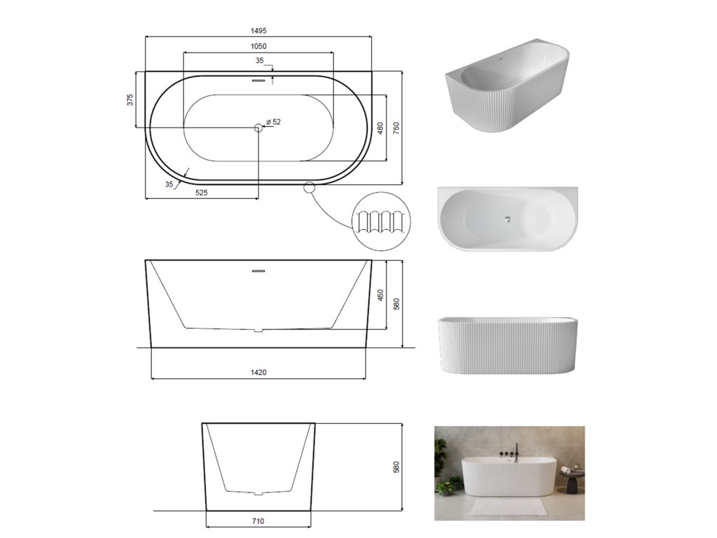 Vana v universálním provedení k montáži k průběžné stěně LEYA v populární černo/bílé kombinaci s velmi originální vroubkovaným čelním panelem se Vám odmění pocitem vysokého komfortu. Budete ležet v lázni a kolem Vás bude dost místa, nic Vás nebude omezovat. Vana i vnější plášť tvoří kompaktní celek. Vana se standardně dodává ve dvou praktických rozměrech v zářivě bílé barvě. Součástí vany je i kvalitní odtoková souprava (systém se štěrbinovým přepadem).