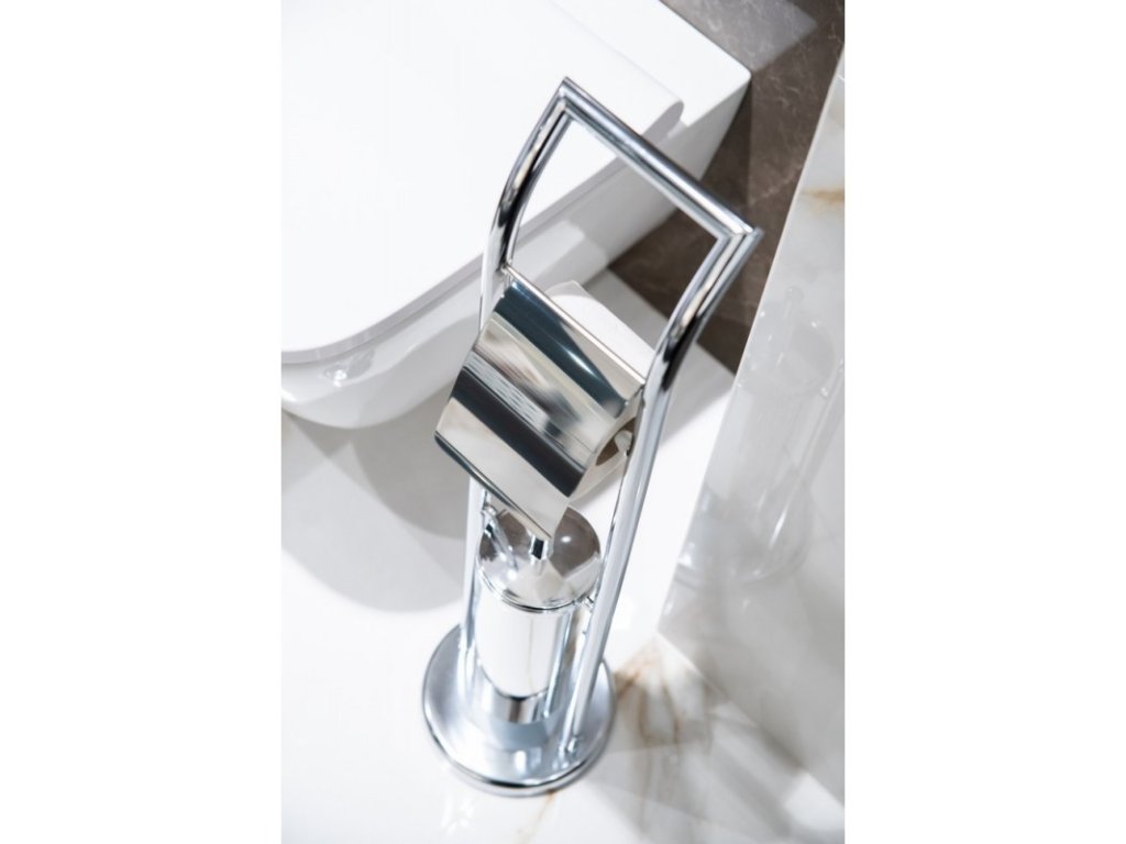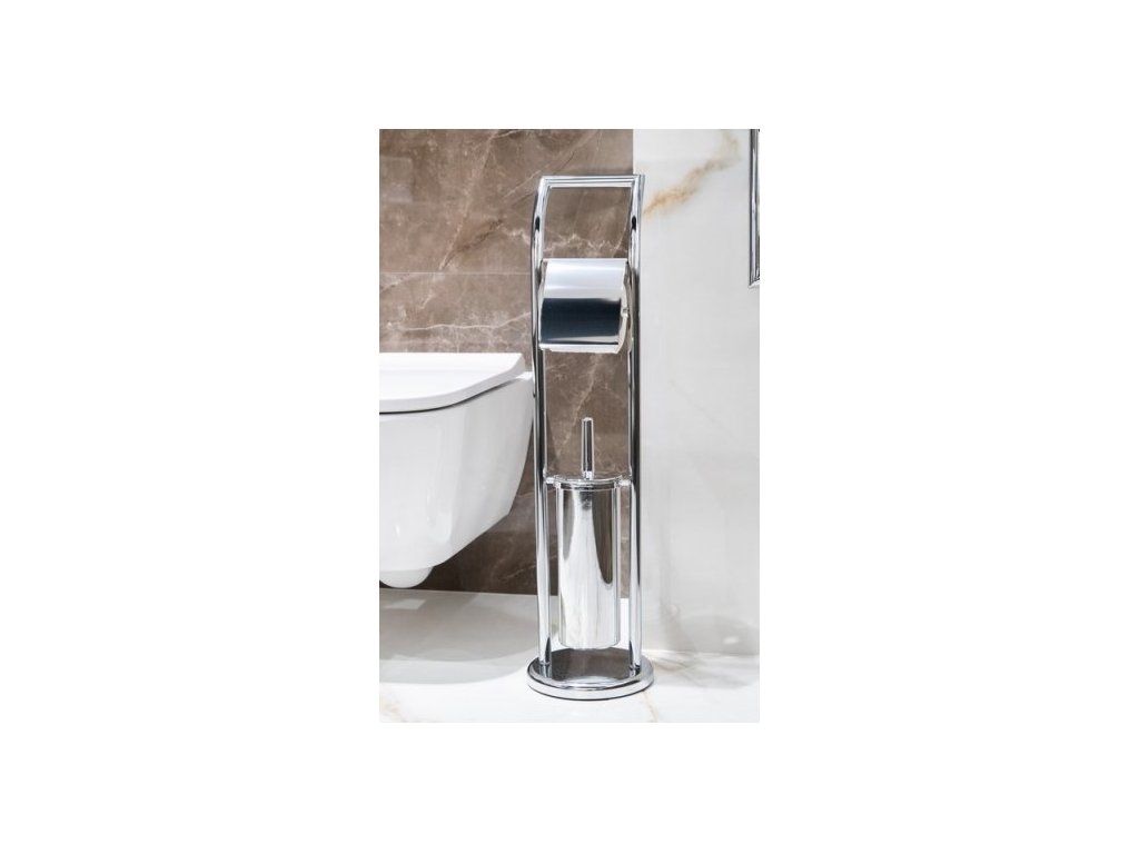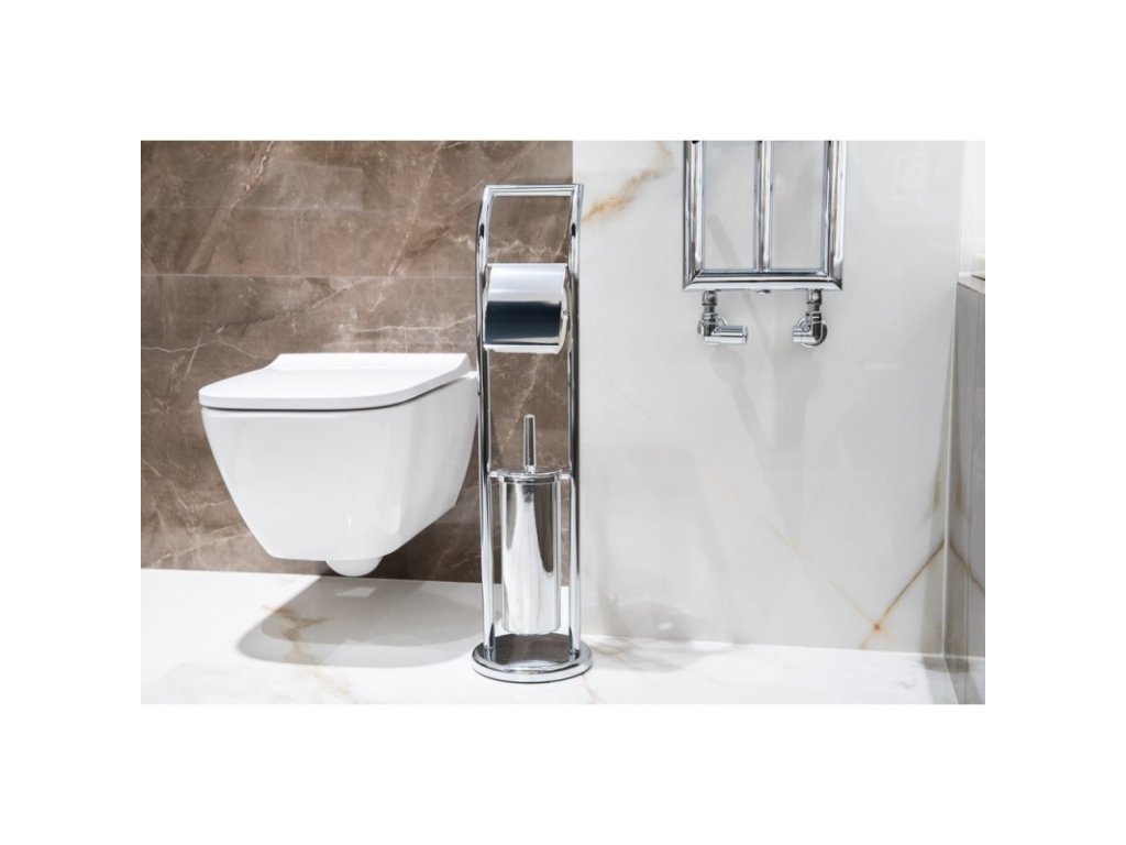 Černý elegantní ramenový stojan na toaletní papír a WC štětku. Velmi kvalitní materiály zaručují vysokou životnost stojanu. Usnadní pořádek na toaletách.