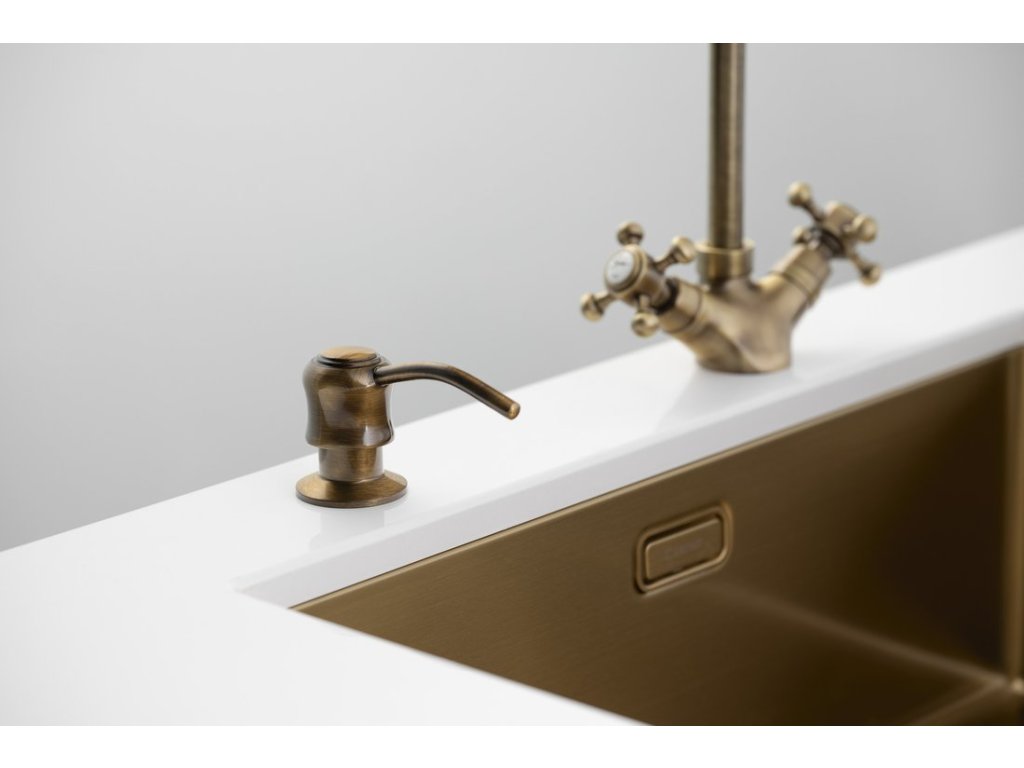 Zápustný dávkovač mýdla a saponátu s možností instalace do umyvadla místo stojánkové baterie, nebo do desky vedle umyvadla či dřezu.