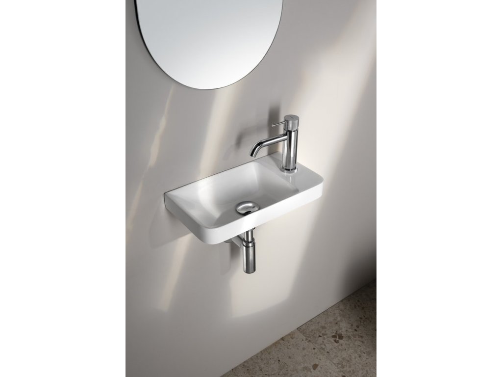 ZORBA umyvadlová skříňka (39 × 50 × 21,5 cm) v bílém lesku, závěsný design s bezúchytkovým otevíráním Push-to-open a zpomalovacími panty. Vyrobena z MDF/lamina, univerzálně...